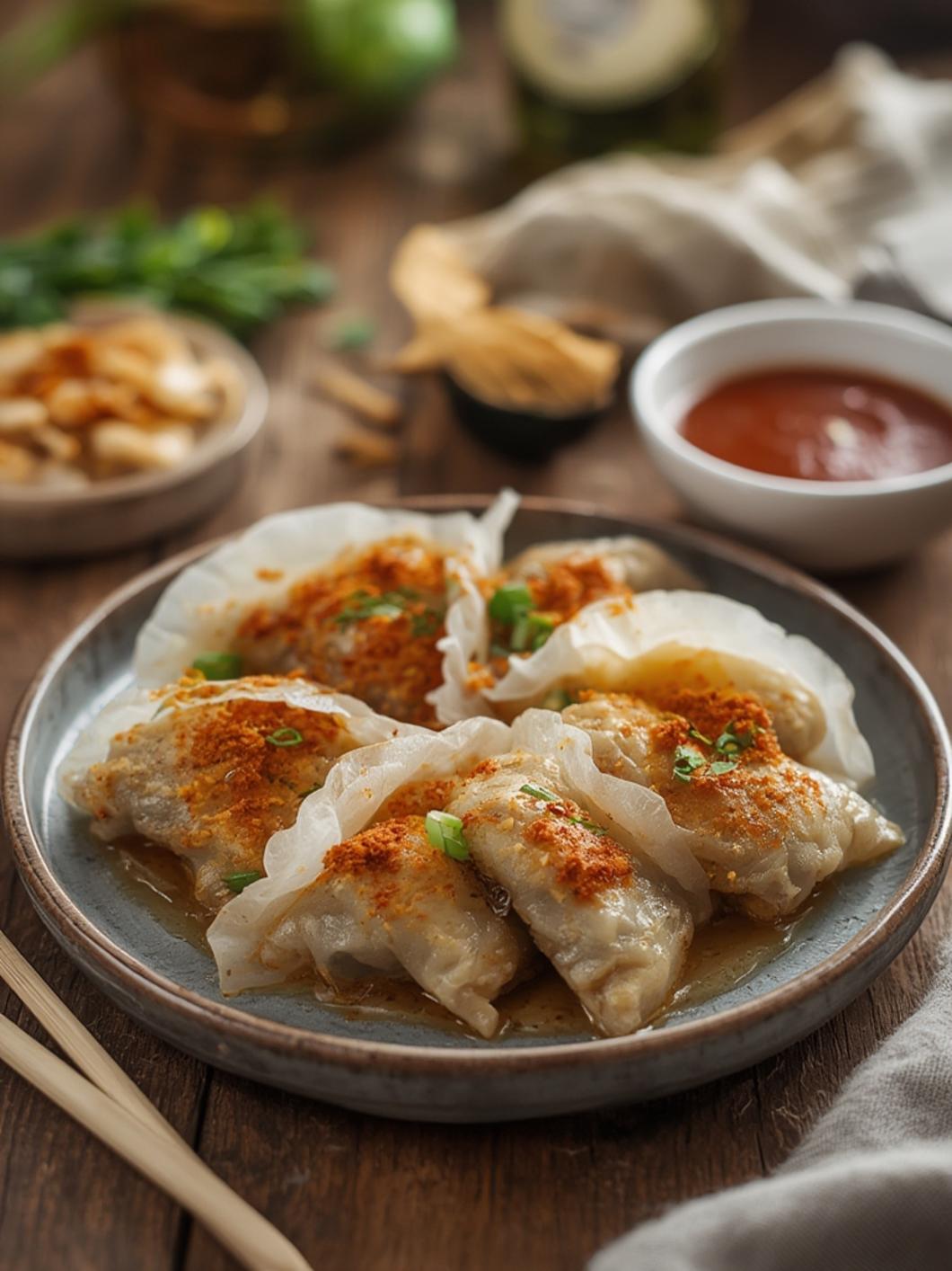 7. Serve: Enjoy your crispy rice paper dumplings warm, and consider serving them with a soy sauce or dipping sauce of your choice!