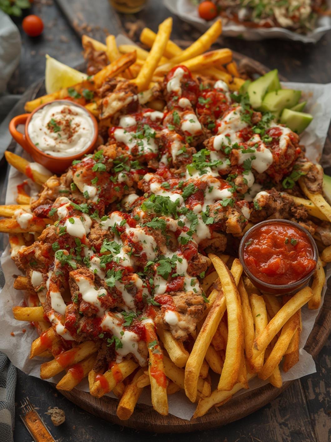 6. Serve and Enjoy: Your easy loaded fries board is ready to be enjoyed! Gather your friends and dive into this delicious spread.