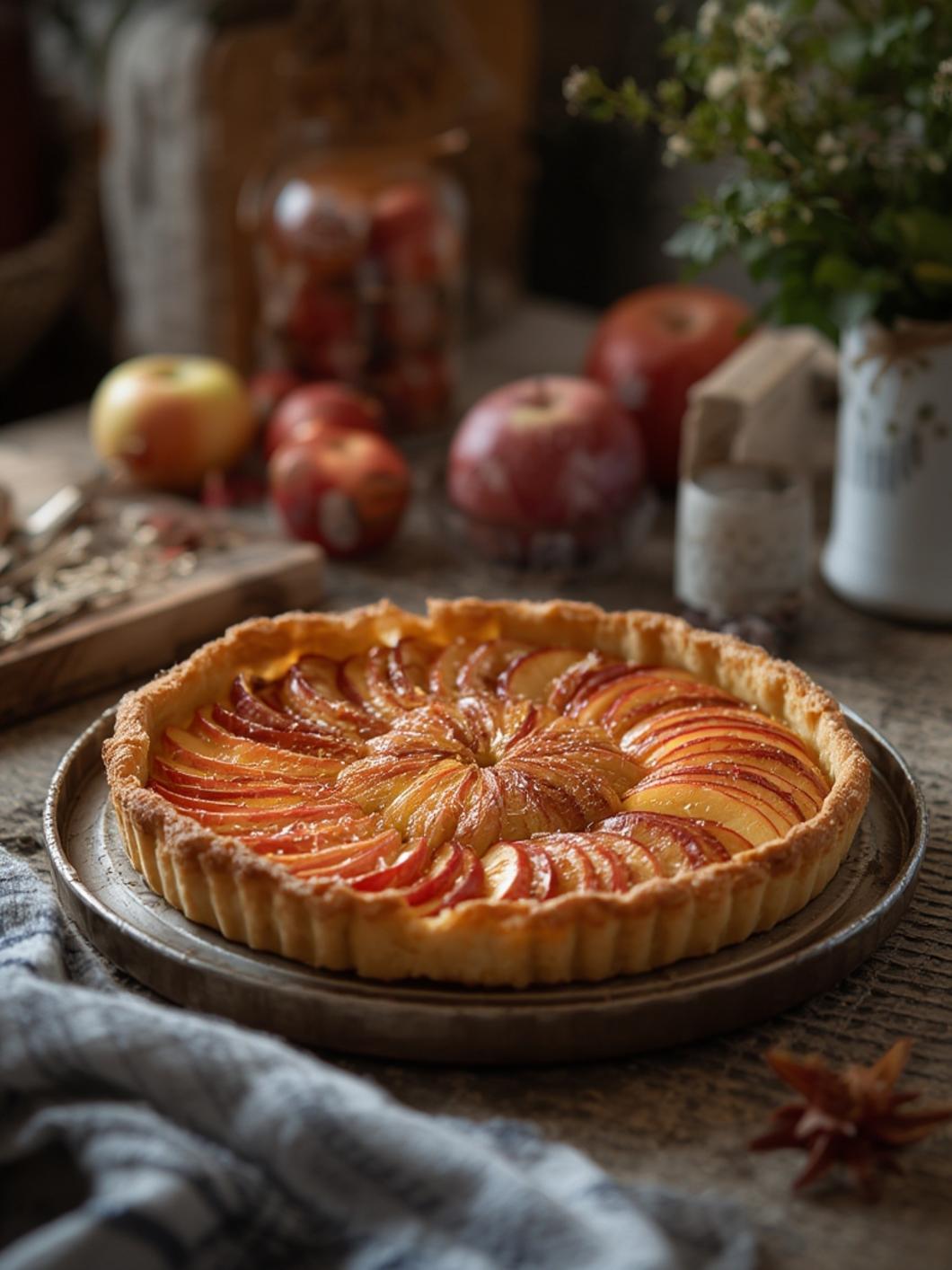 4. Layer the Apples: Arrange the apple slices beautifully in the pastry shell, starting from the outer edge and working your way to the center. You can overlap them slightly for a more eye-catching look.