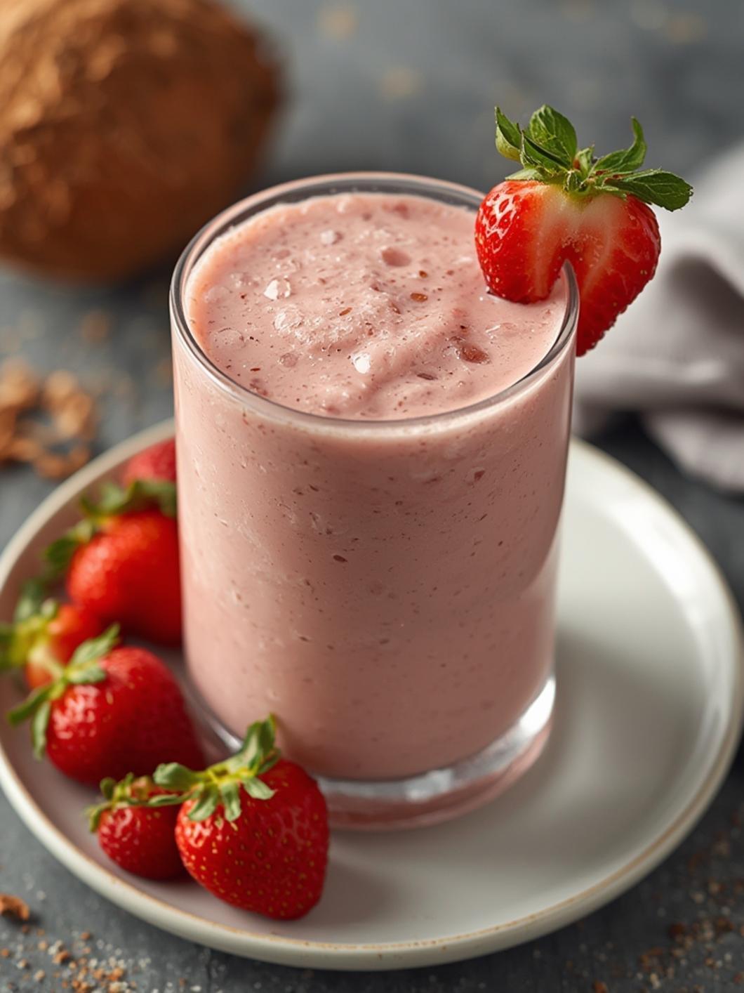 Ready to delight your taste buds with this Coconut Strawberry Smoothie? With its rich flavors and easy steps, it’s a fantastic addition to your recipe repertoire. Give it a try and let me know how you enjoyed it! Don’t forget to share this recipe with friends or on social media—it’s too good to keep a secret!